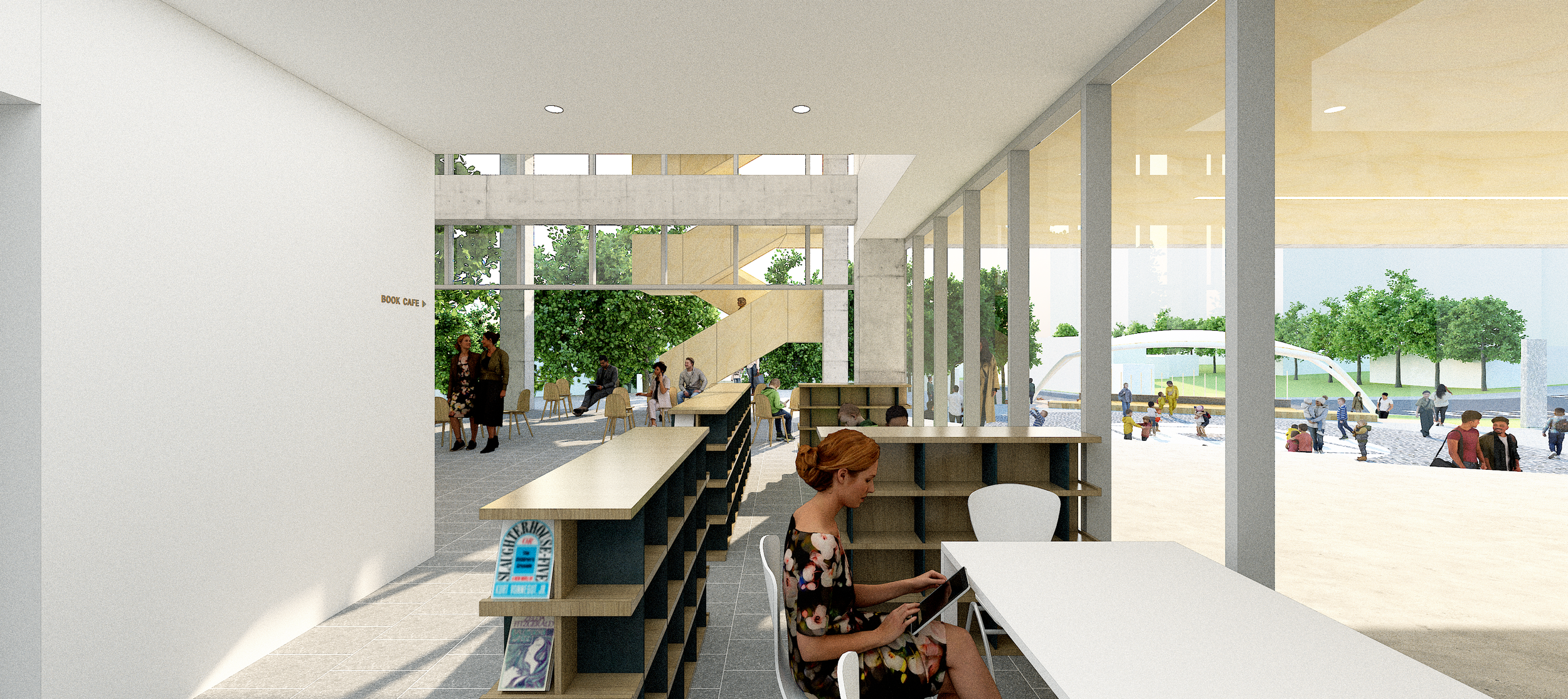 ‘행복문화센터’는 대지가 가지고 있는 원지형을 존중하여 건물을 지형위에 그대로 앉혔다. 문화의 거리에서부터 이어지는 서로 다른 레벨의 연속된 마당은 건물의 주출입구와 2층 공연장 주출입구까지 낮은 계단과 경사로로 자연스럽게 이어지며 외부계단을 통해 3층으로도 바로 진입이 가능하도록 하여 외부와 내부는 하나의 연속된 흐름을 가지고 유기적인 관계를 맺는다.